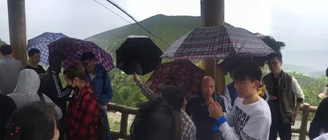 登山途中,雨還是不約而至。夏天的雨就是如此任性和熱烈。大家沒有因為雨的到來而停止腳步,盡管山路濕滑,大家熱情不減,互相鼓勵,相互攙扶,雨中一路前行。