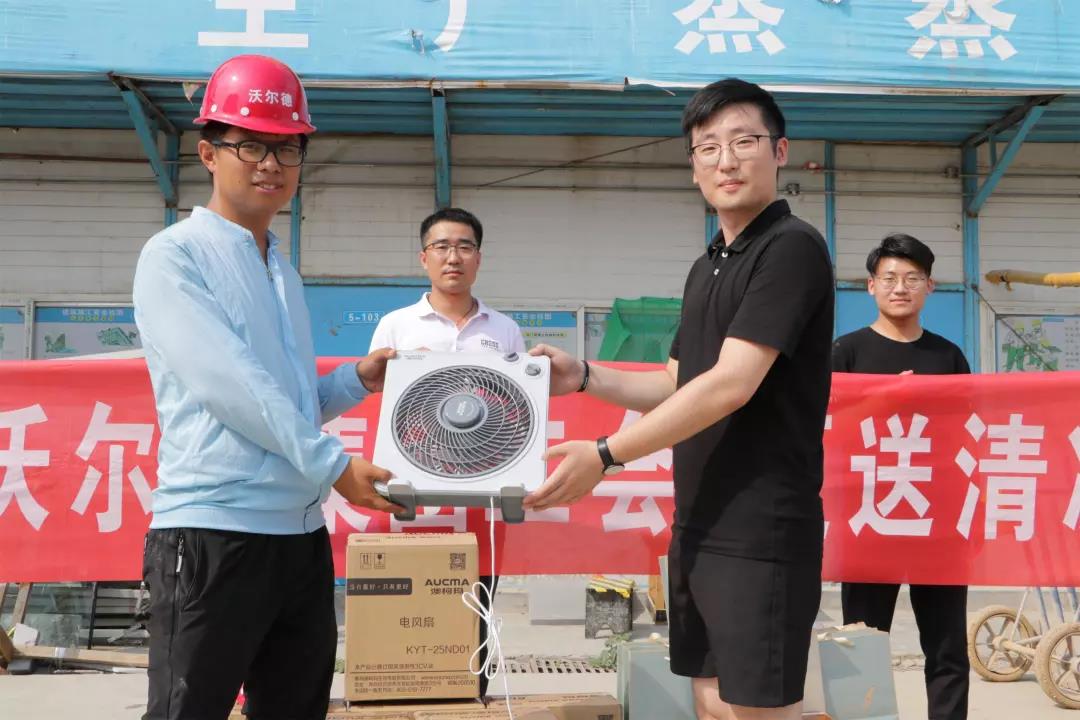 為做好防暑降溫工作,保障施工一線人員的健康權益,改善員工生產生活條件,2018年7月19日,沃爾德集團工會開展了“夏送清涼”活動。為奮戰(zhàn)在一線的員工們發(fā)放了電風扇、茶葉、西瓜等防暑降溫物品,把清涼送到了施工一線,把關懷送到大家心坎。