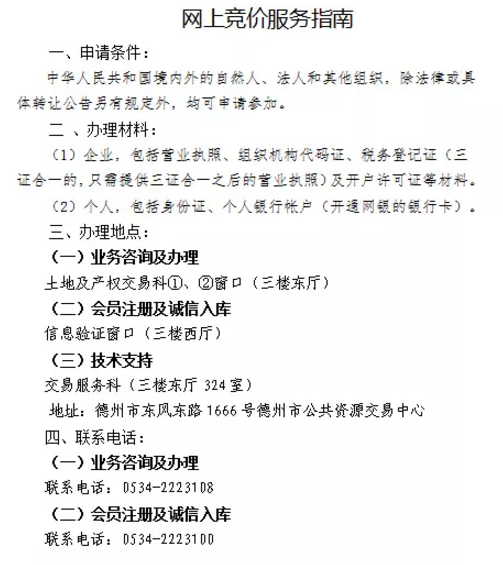 2、交易文件一經(jīng)在德州市公共資源交易系統(tǒng)發(fā)布,視作已發(fā)放給所有競買人(發(fā)布時間即為發(fā)出交易文件的時間),各競買人應(yīng)隨時關(guān)注報名項目信息并及時登錄德州市公共資源交易系統(tǒng)下載電子版交易文件,否則所造成的一切后果由競買人自負(fù)。
