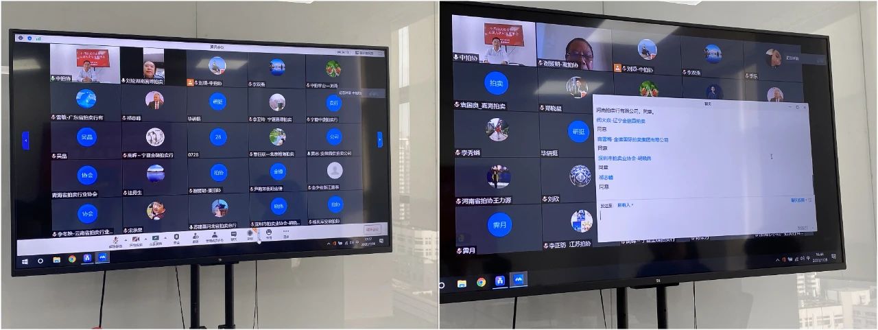 中拍平臺網絡科技股份有限公司常務副總經理劉燕就平臺公司自身發展和新推出的網絡公告、中拍拍輔等產品向與會代表做了介紹。上半年中拍平臺網絡拍賣場次增長47%,成交額增長75%,為服務拍賣企業復工復產發揮了積極作用。湖北拍協代表,寧夏拍協代表、湖南賽德代表還就本省拍賣的情況和遇到的問題在會上與大家進行了探討。