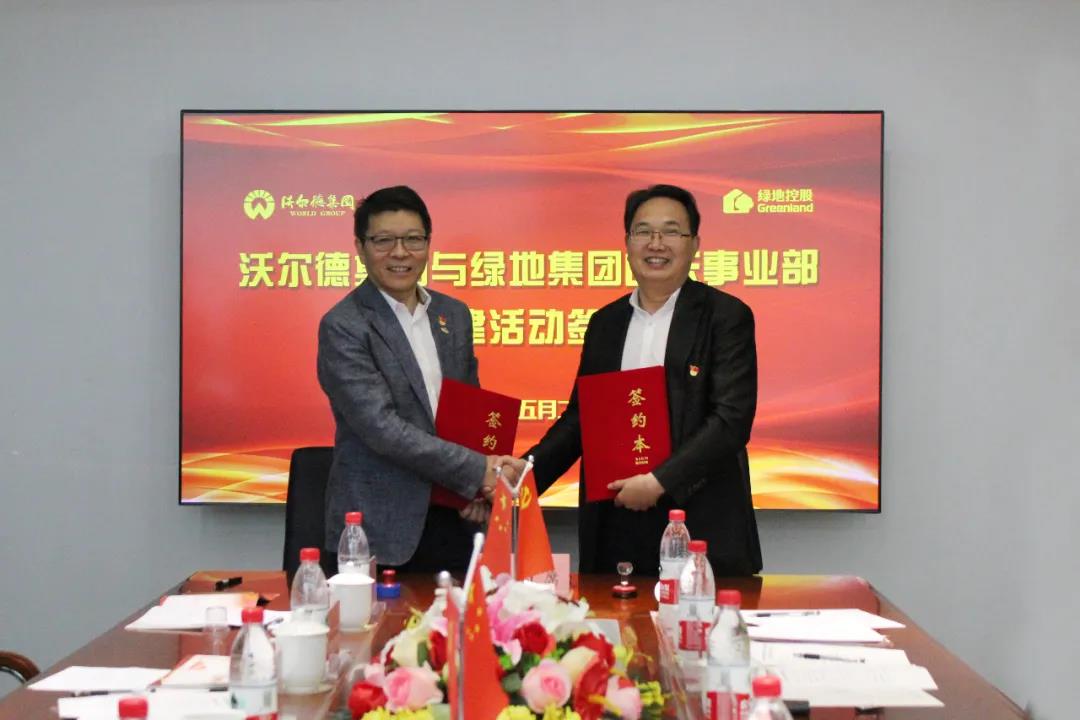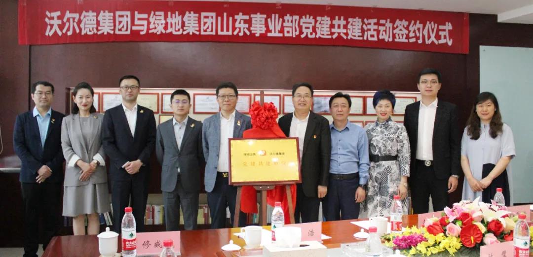 黨建共建簽約儀式上,綠地集團總裁助理、山東事業(yè)部黨委書記、總經(jīng)理薛明輝與沃爾德集團黨支部書記、董事長林擘共同簽訂《黨建共建協(xié)議書》,并為“綠地山東—沃爾德集團黨建共建單位”揭牌,標志著雙方正式確立黨建工作和業(yè)務(wù)雙線合作的新型關(guān)系,將進一步強化“兩個黨組織”的戰(zhàn)斗堡壘和黨員先鋒模范作用。雙方也將以此為契機,充分發(fā)揮各自優(yōu)勢,通過加強交流、互助合作,進一步促進各領(lǐng)域的合作共贏。
