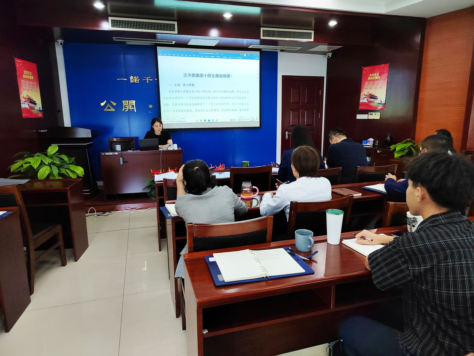 沃爾德集團(tuán)總裁、金諾國拍集團(tuán)董事長商雪梅向全體參會(huì)人員對沃爾德集團(tuán)十四五規(guī)劃進(jìn)行宣講,研讀。規(guī)劃表示,在十四五期間,集團(tuán)將繼續(xù)貫徹“做大做強(qiáng)”的主題,力求集團(tuán)各版塊穩(wěn)中求進(jìn)、進(jìn)中求新、爭創(chuàng)一流,積極在變化中抓住機(jī)遇,奮力開創(chuàng)新局。
