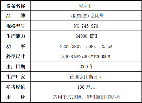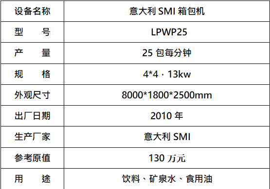 標的四:套標機,起拍價:30萬元(不含稅),標的設有保留價,競買保證金6萬元。已拆機,設備完好。