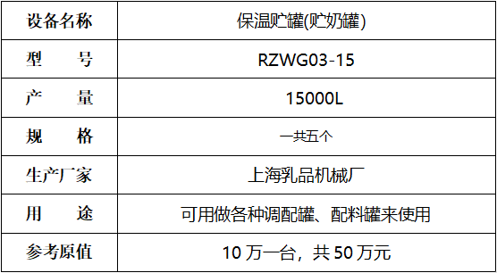 標的七:上海乳品廠5個儲奶罐,起拍價:40萬元(不含稅),標的設有保留價,競買保證金8萬元。已拆機,設備完好。