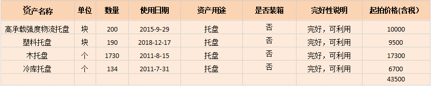 受委托,我公司將于2022年3月16日下午15時在金拍網平臺https://www.jinpaiwang.com.cn以網絡競價的方式公開處置高承載強度物流托盤、塑料托盤、木托盤、冷庫托盤等 (具體見標的詳情表)。