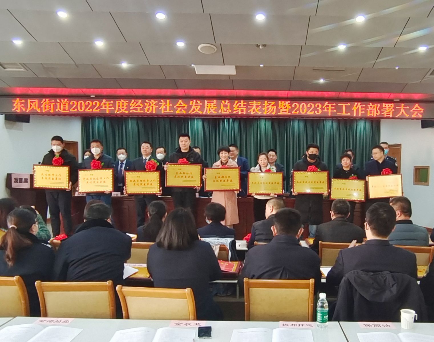 1月17日上午,東風街道召開2022年度經濟社會發展總結表揚暨2023年工作部署大會。大會現場對先進集體進行表彰,金諾國拍集團被授予“奉獻東風表現突出單位”榮譽稱號。