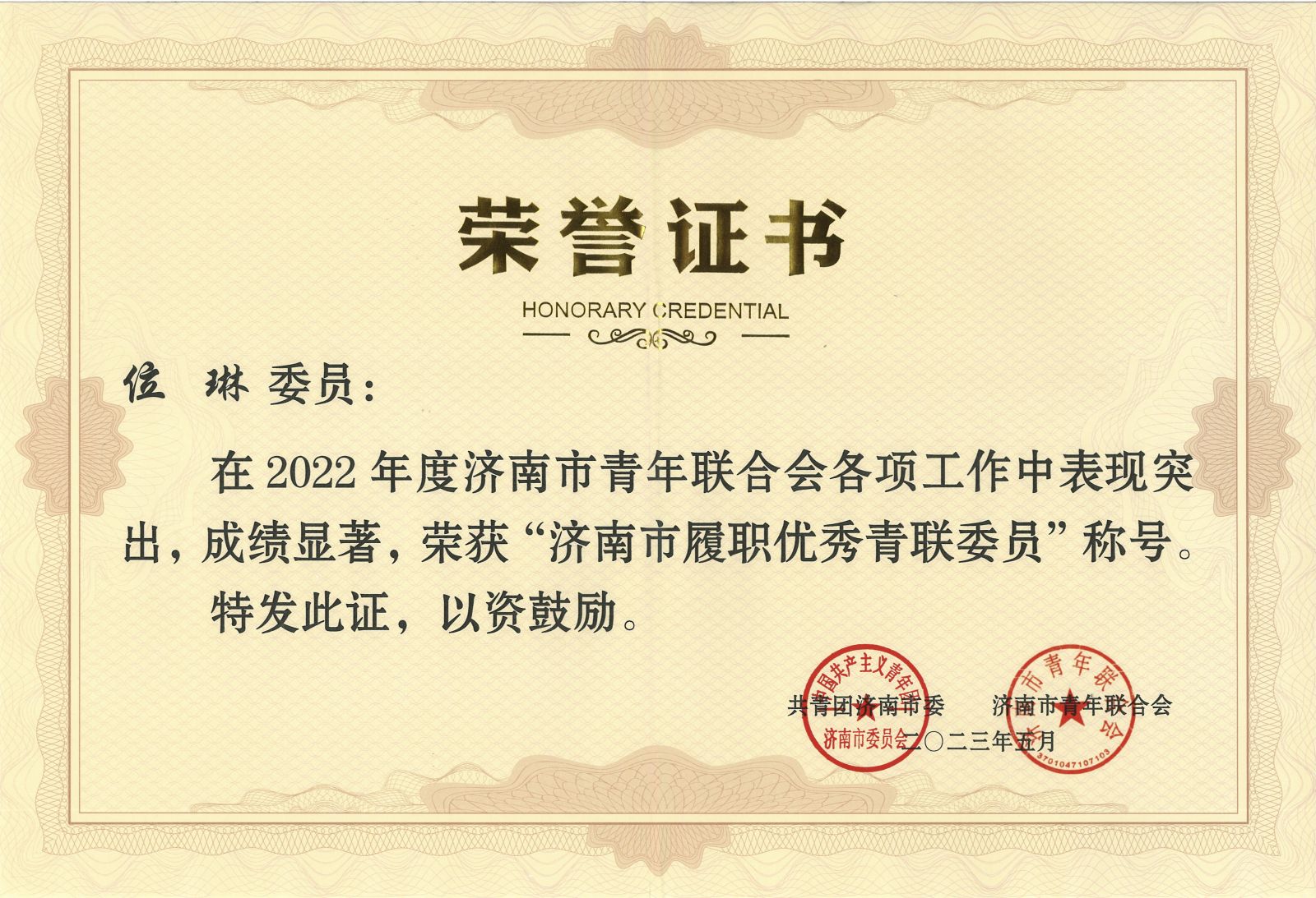 為進(jìn)一步貫徹落實(shí)習(xí)近平新時(shí)代中國特色社會(huì)主義思想主題教育精神要求,為加快建設(shè)“強(qiáng)新優(yōu)富美高”新時(shí)代社會(huì)主義現(xiàn)代化強(qiáng)省會(huì)匯聚更大青春力量,近日,泉城青聯(lián)大講堂暨濟(jì)南市青年團(tuán)體骨干青馬工程培訓(xùn)班成功舉辦。濟(jì)南市青年聯(lián)合會(huì)對(duì)2022年度各項(xiàng)工作中表現(xiàn)突出的委員進(jìn)行表彰頒發(fā)榮譽(yù)證書,金諾國拍集團(tuán)總裁位琳榮獲2022年度“濟(jì)南市履職優(yōu)秀青聯(lián)委員”稱號(hào)。