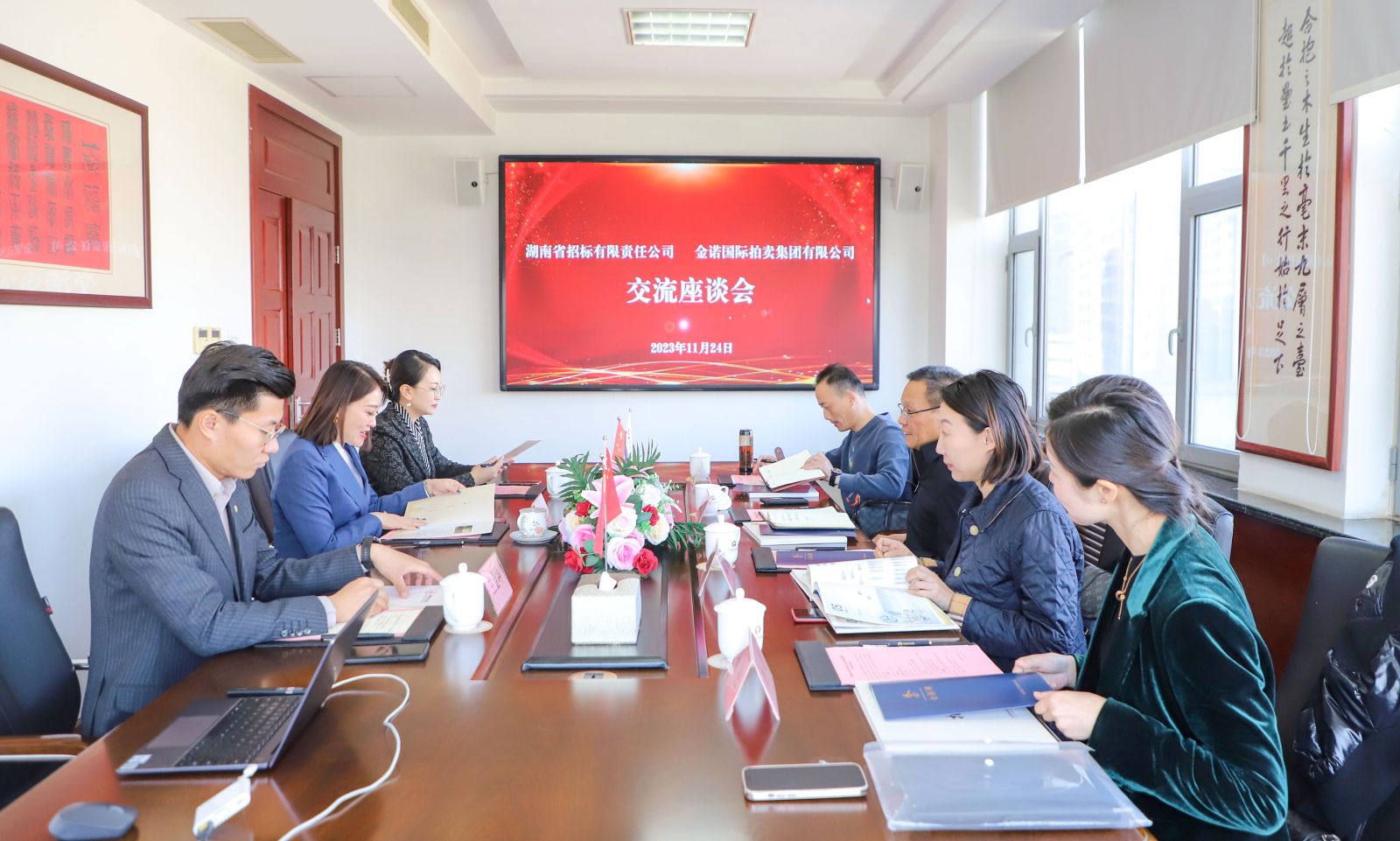 交流互鑒拓思路,攜手共進促提升。為進一步增進了解,促進交流,建立合作,相互學習拍賣行業(yè)及相關領域發(fā)展中的先進理念和成功經驗,構建拍賣企業(yè)間互通互聯(lián)、互學互鑒、共促共進的發(fā)展局面。2023年11月24日上午,湖南省招標有限責任公司董事長劉成建一行蒞臨金諾國拍集團考察交流。湖南省招標有限責任公司副總經理譚娜、綜合辦公室(人力資源部)主任譚創(chuàng)、湖南省拍賣行有限責任公司執(zhí)行董事孫艷陪同考察。沃爾德集團總裁、金諾國拍集團董事長商雪梅,金諾國拍集團總裁位琳,金諾國拍集團副總裁主金坤陪同接待并參與座談交流。