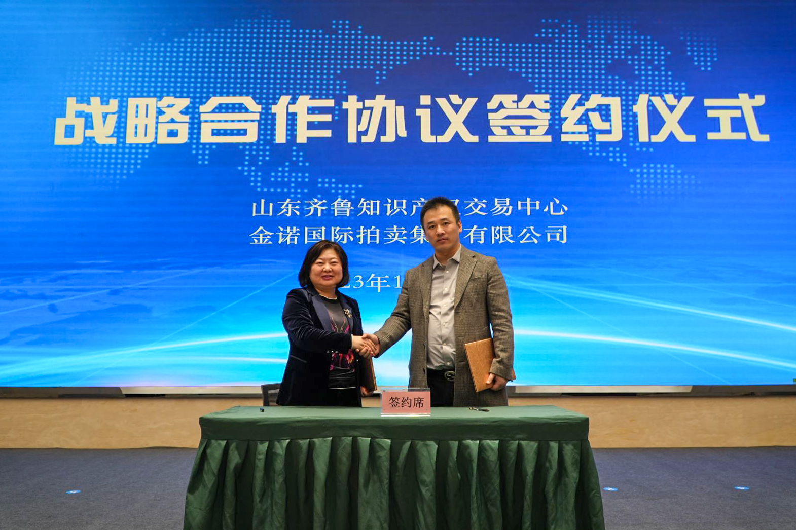 本次拍賣會(huì)取得圓滿成功,金諾國(guó)際拍賣集團(tuán)有限公司受到主辦單位的贊譽(yù),雙方達(dá)成進(jìn)一步合作共識(shí),山東齊魯知識(shí)產(chǎn)權(quán)交易中心總經(jīng)理桑文新與金諾國(guó)際拍賣集團(tuán)有限公司常務(wù)副總裁劉仰軍現(xiàn)場(chǎng)簽署“戰(zhàn)略合作協(xié)議”。雙方將繼續(xù)加強(qiáng)深度合作,進(jìn)一步協(xié)同與山東省各類技術(shù)交易主體的聯(lián)動(dòng),并根據(jù)專利技術(shù)交易的特點(diǎn),依托拍賣競(jìng)價(jià)的交易方式,打造專利技術(shù)交易拍賣模式的“山東品牌”,進(jìn)而為技術(shù)成果的價(jià)值提升和加速轉(zhuǎn)化效率貢獻(xiàn)“山東智慧”。