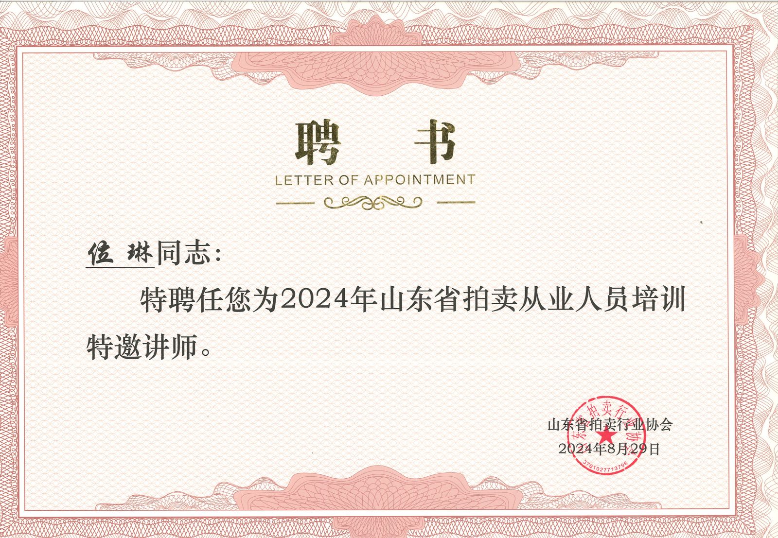 本次培訓(xùn)班省拍協(xié)聘請(qǐng)中國(guó)拍賣行業(yè)協(xié)會(huì)拍賣師主持技巧考試教官、考官李麗和位琳為特邀講師,并現(xiàn)場(chǎng)頒發(fā)了聘書。