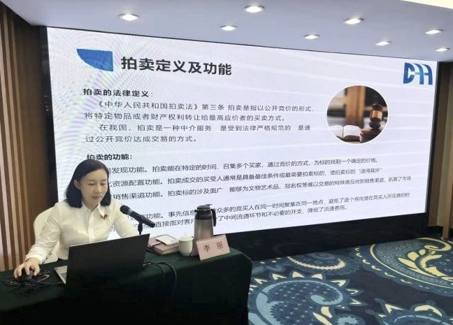 李麗老師在講課中以《我們一起了解拍賣》為主題,從拍賣標(biāo)的、當(dāng)事人、程序、法律關(guān)系等多個(gè)知識(shí)點(diǎn),為學(xué)員們?cè)敿?xì)講解拍賣業(yè)務(wù)如何開展,全面梳理了拍賣企業(yè)落實(shí)合規(guī)要求,內(nèi)容翔實(shí),學(xué)員們反響熱烈,收貨頗豐。