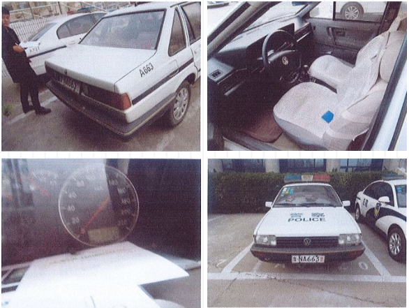 1.魯NA662警桑塔納轎車:標(biāo)的車輛車身白/藍(lán)色,車架號LSVAU033092111791,排量1.8L,初次登記日期為2009年6月11日,年檢有效期至2019年6月,保險(xiǎn)有效期至2019年3月21日,截至2018年3月28日已行駛144594公里。參考價(jià)為10350元。