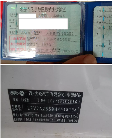 2、存放于甘肅省平?jīng)鍪熊嚰芴?hào)為L(zhǎng)FV2A2BS9H4518198,發(fā)動(dòng)機(jī)號(hào)為025254大眾牌車輛一臺(tái)。